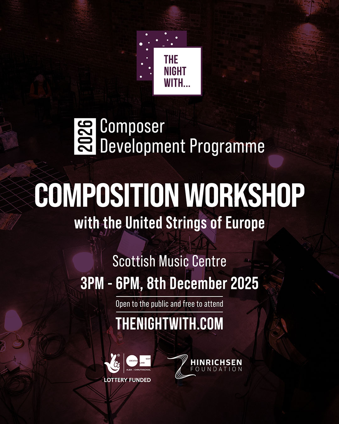 The Night With… 2026 Composer Development ProgrammeCOMPOSITION WORKSHOP with the United Strings of Europe3PM – 6PM, 8th December, Scottish Music CentreOpen to the public and free to attend.